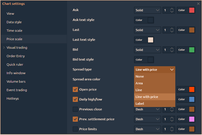 <figure><img src="https://4186075531-files.gitbook.io/~/files/v0/b/gitbook-x-prod.appspot.com/o/spaces%2F-LD6FsRvQ3jgwJIg6O7r%2Fuploads%2FXg6wGlPkNCsNlPK0xgbe%2Fimage.png?alt=media&#x26;token=88b71da4-2c01-435d-9be7-6d28467d0565" alt=""><figcaption><p>Customize colors of Bid and Ask prices</p></figcaption></figure>