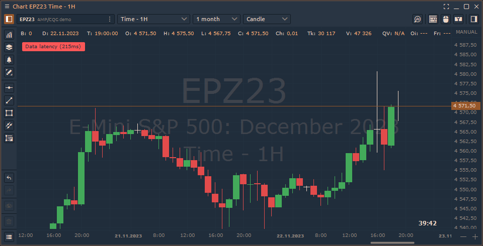 Whether the data delay occurs on a Rithmic server, CQG, Binance, or during transmission to the client, we make efforts to identify instances where server-side timestamps start to lag.